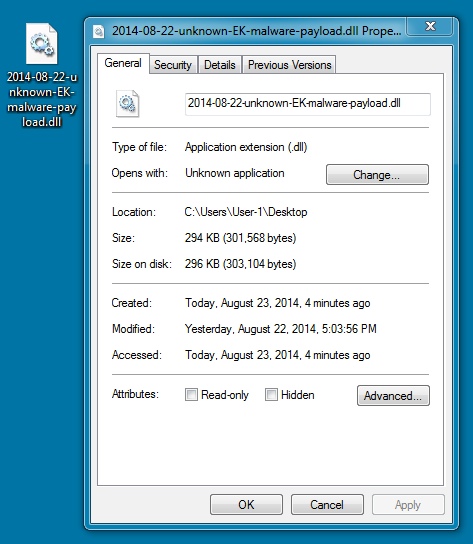 File name: 2014-08-22-unknown-EK-malware-payload.dll