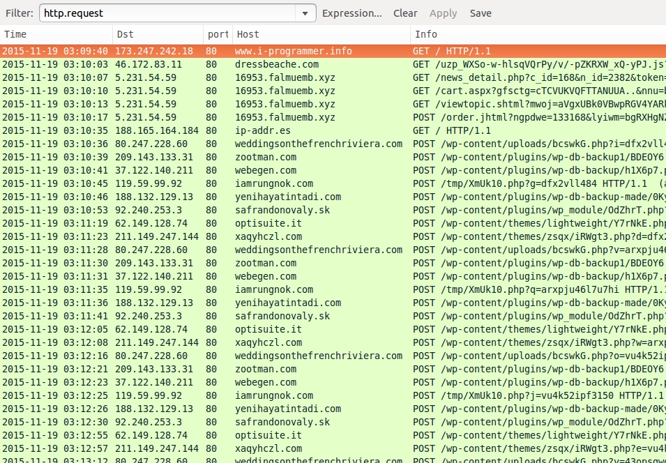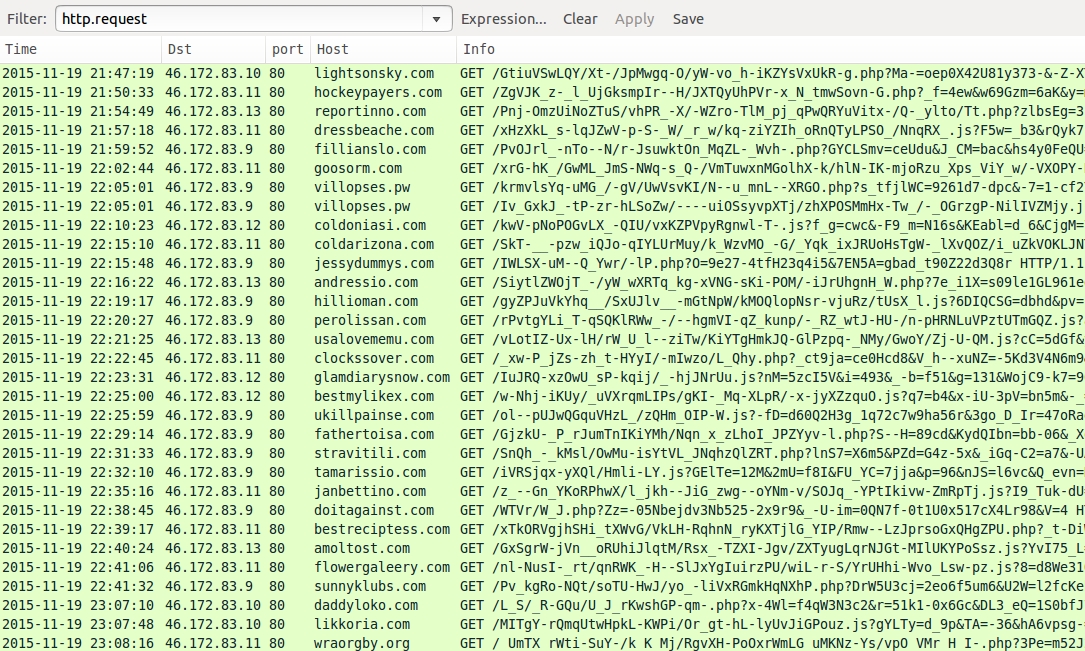 Shown above: Pcap of the infection traffic filtered in Wireshark.