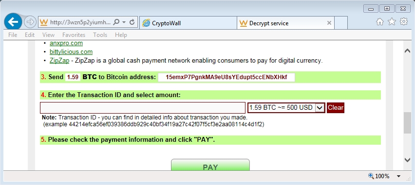 Shown above: User checking decrypt instructions for the ransom payment info.