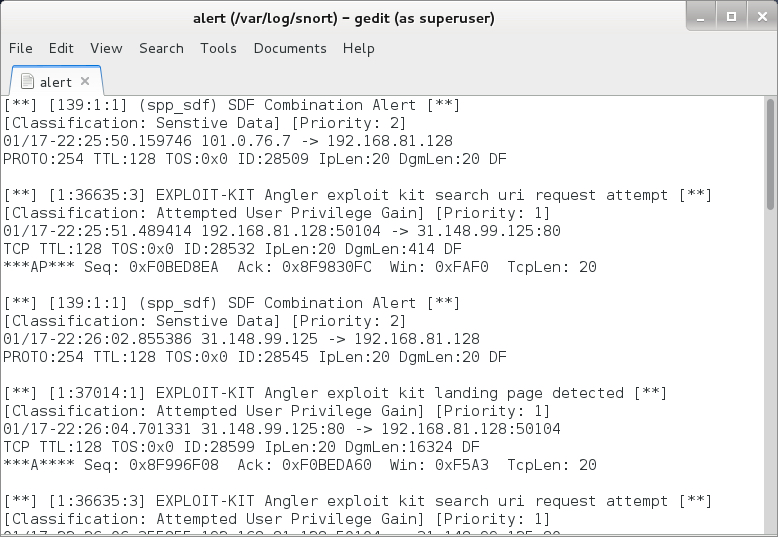 - 31.148.99[.]125 port 80 - [1:36635:3] EXPLOIT-KIT Angler exploit kit search uri request attempt