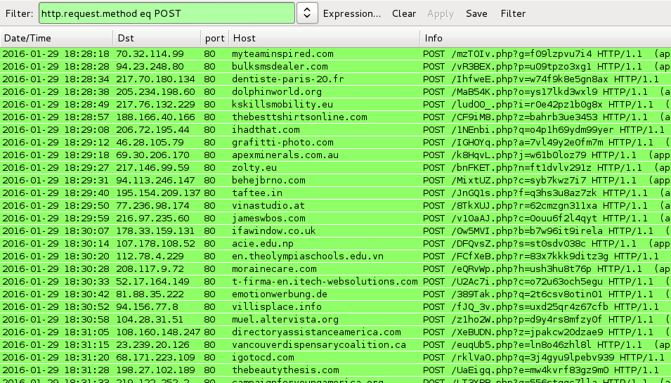 Shown above: CryptoWall ransomware callback traffic when I tested the malware sample.