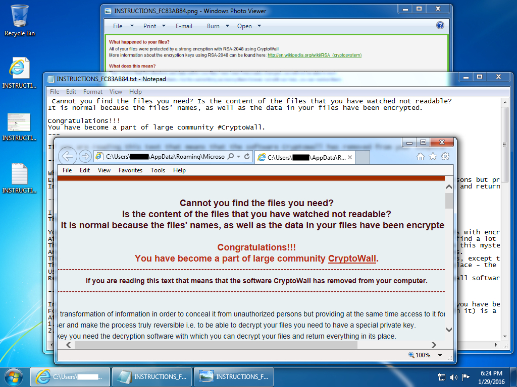 Shown above: Today's CryptoWall ransomware sample infecting a Windows desktop.