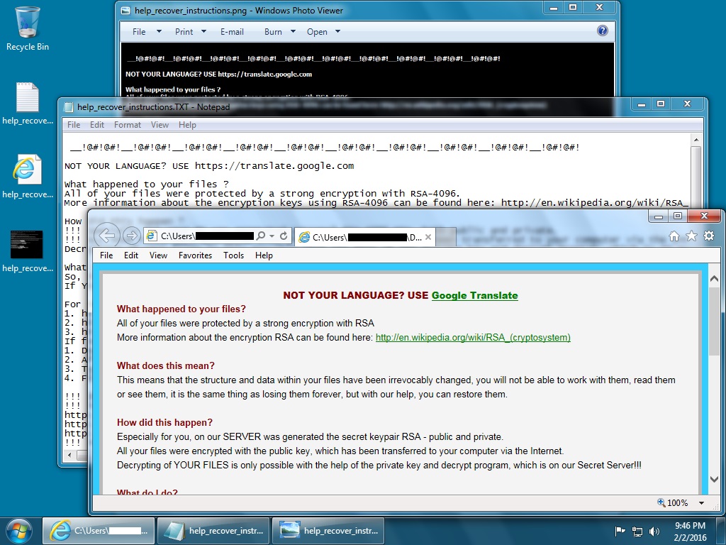 Shown above: An example of the infected Windows desktop after Nuclear EK sent TeslaCrypt ransomware.