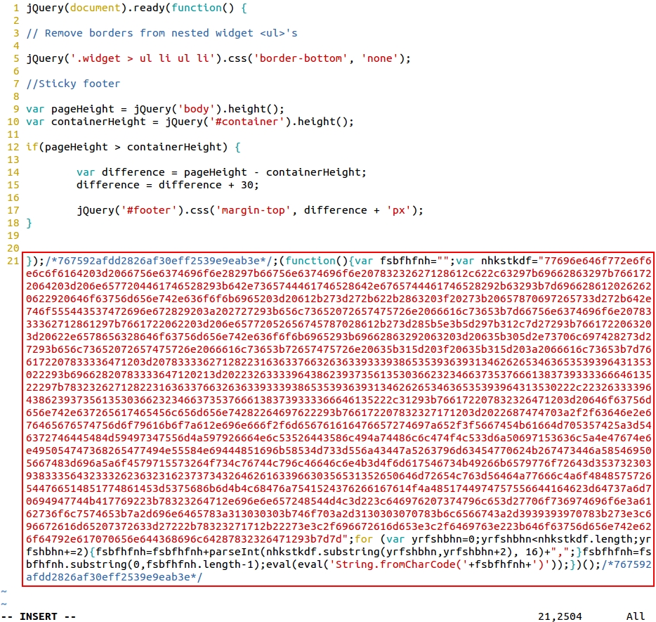 - straightpathsql[.]com - GET /wp-content/themes/delegate-new/includes/js/general.js?ver=4.3.1 [.js file with injected script]