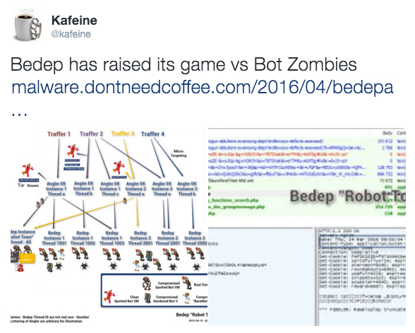 - Today's example of pseudo-Darkleech Angler EK delivered Bedep and followed up with CryptXXX ransomware.