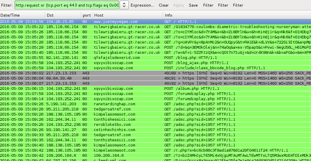 Shown above: Pcap of the traffic on a normal host filtered in Wireshark. http.request or (tcp.port eq 443 and tcp.flags eq 0x0002)