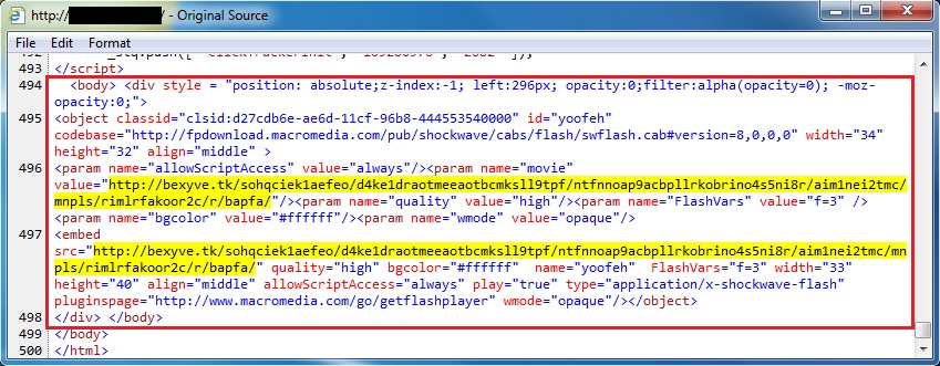 IMAGES OF INJECTED EITEST SCRIPT IN PAGES FROM COMPROMISED WEBSITES