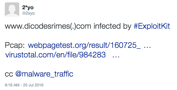 Shown above: Thanks again to @2xyo for another tweet about a compromised site.