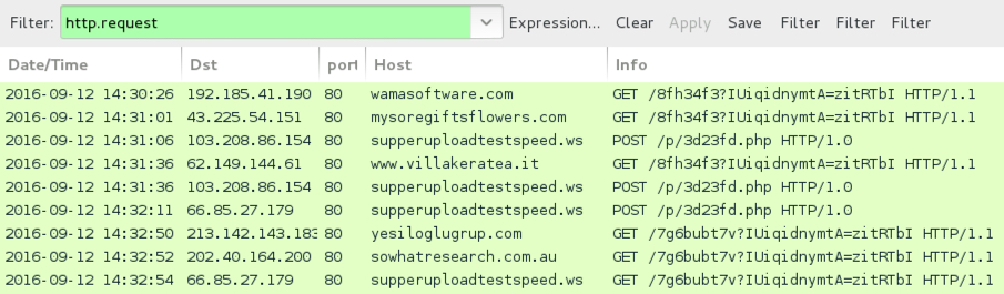 Shown above: Traffic from the first example (caused by .wsf file), filtered in Wireshark.