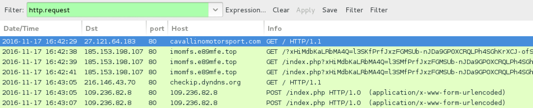 - 109.236.82[.]8 port 80 - 109.236.82[.]8 - POST /index.php HTTP/1.0 [post-infection callback]
