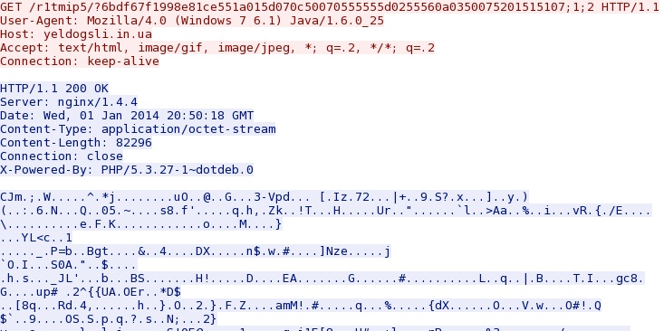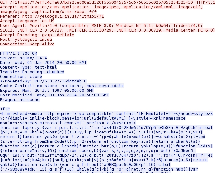 First payload request, this one based on the MSIE CVE-2013-2551 exploit: