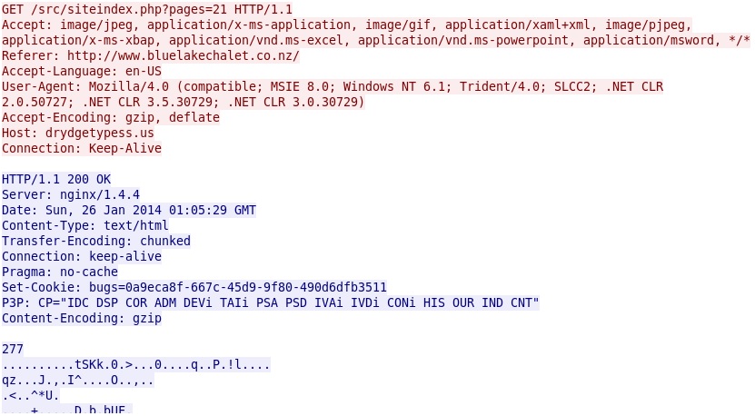 - 2014-01-26 01:05:29 UTC - 82.146.35[.]151 port 80 - drydgetypess[.]us - GET /src/siteindex.php?pages=21