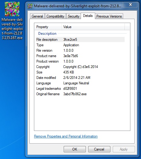 File name: Malware-delivered-by-Silverlight-exploit-from-212.83.135[.]167.exe