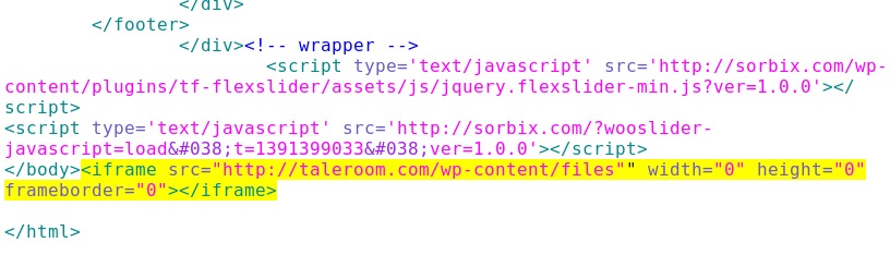 Embedded iframe in the infected web page - sorbix[.]com/