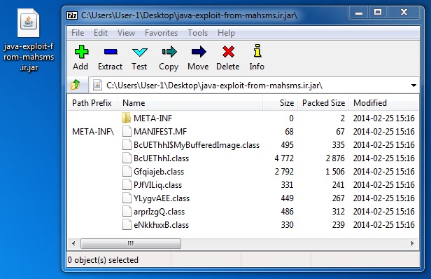 NOTE: The Java exploit seen here (a .JAR file) is encrypted or otherwise obfuscated.