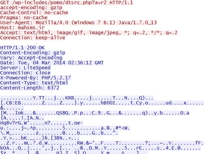 Hello EK delivers Java exploit CVE-2013-2465 - mahsms[.]ir/wp-includes/pomo/dtsrc.php?a=r2
