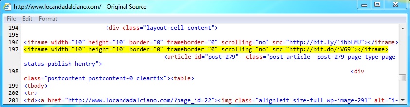 Embedded iframe in web page from compromised server - www.locandadalciano[.]com