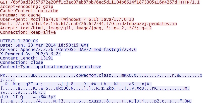 - 2014-03-23 18:50:01 UTC - 67.196.50[.]153:80 - ET INFO JAVA - Java Archive Download By Vulnerable Client