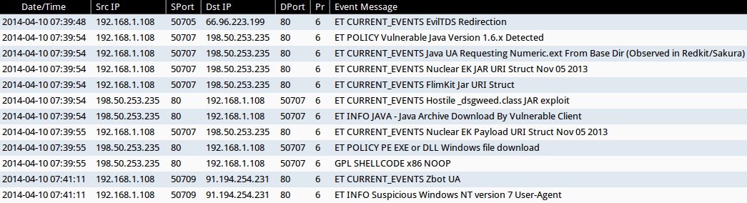 - 2014-04-10 07:39:54 UTC - 198.50.253[.]235:80 - ET CURRENT_EVENTS Nuclear EK JAR URI Struct Nov 05 2013