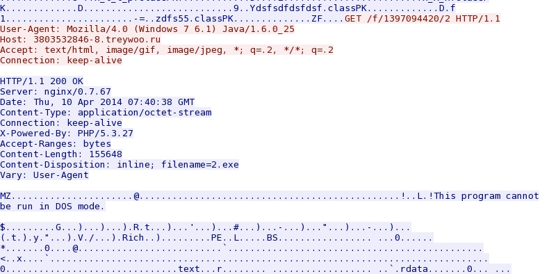 Java exploit delivers EXE payload: