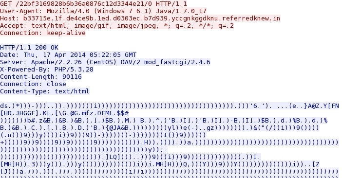 - 2014-04-17 05:22:21 UTC - 67.196.3[.]69:80 - ET POLICY Vulnerable Java Version 1.7.x Detected