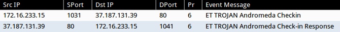 - 37.187.131[.]39:80 - ET TROJAN Andromeda Check-in Response