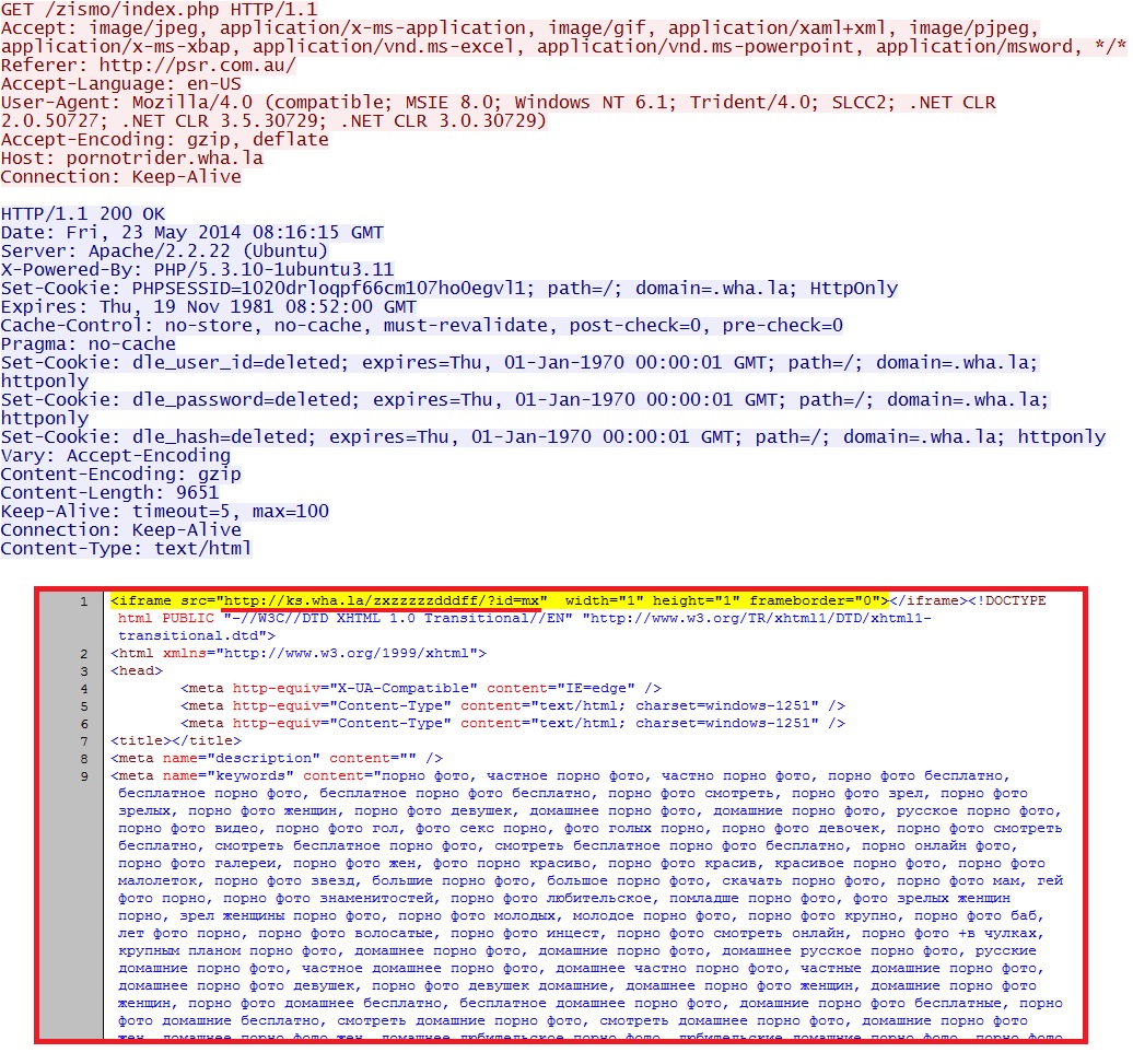 - 08:15:07 UTC - pornotrider.wha[.]la - GET /zismo/index.php