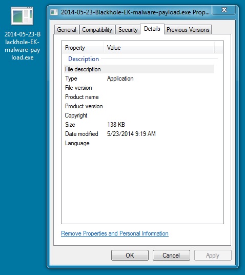 File name: 2014-05-23-Blackhole-EK-malware-payload.exe