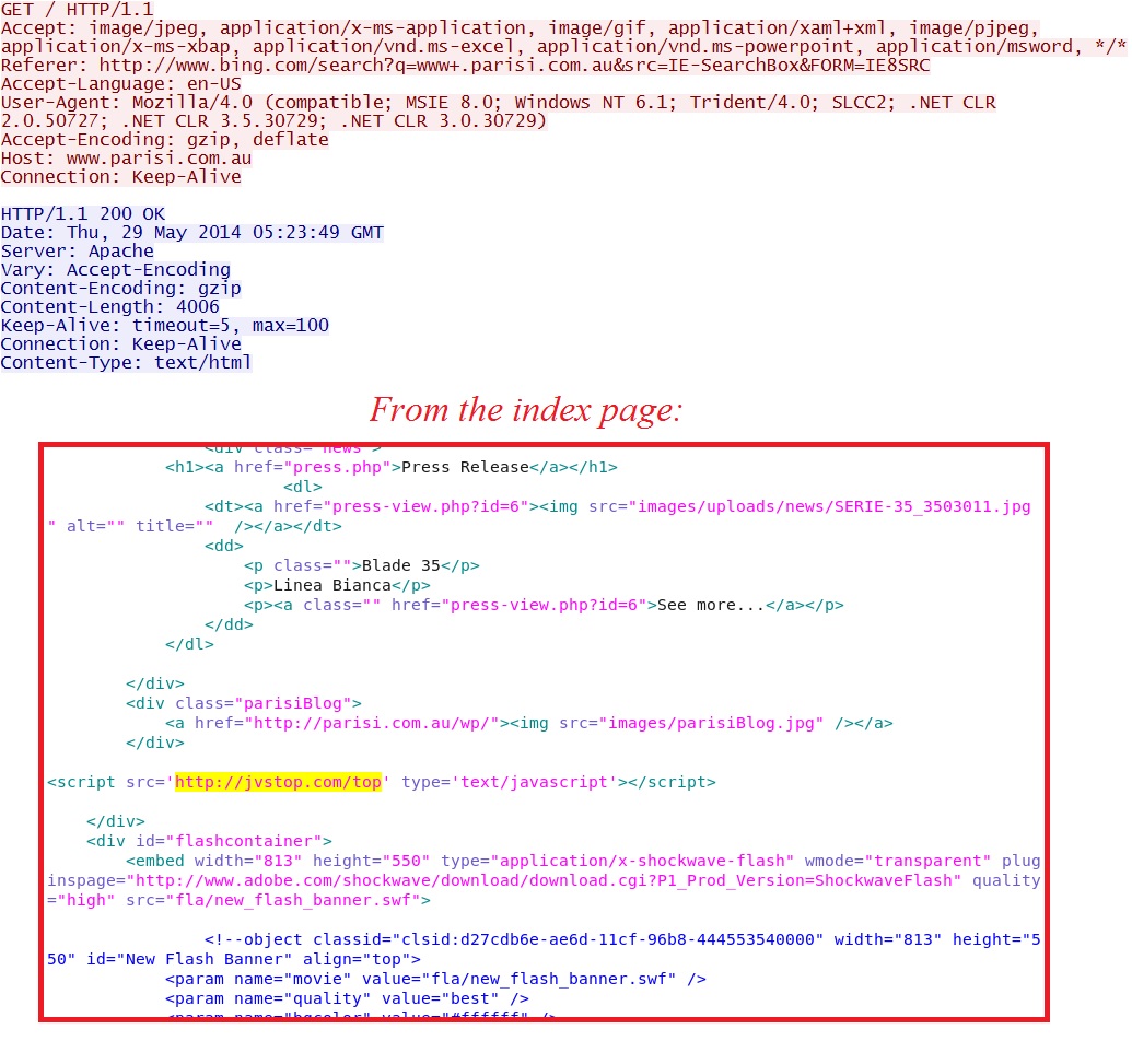 - 05:23:49 UTC - 202.4.238[.]2:80 - www.parisi[.]com[.]au - GET /