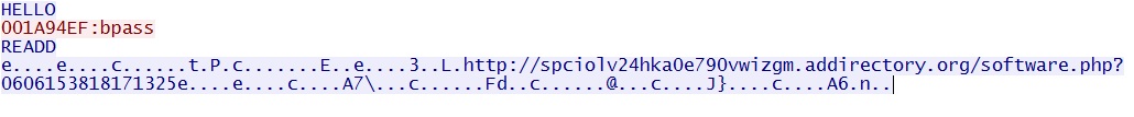 Callback traffic on TCP port 19399 with the request for more malware: