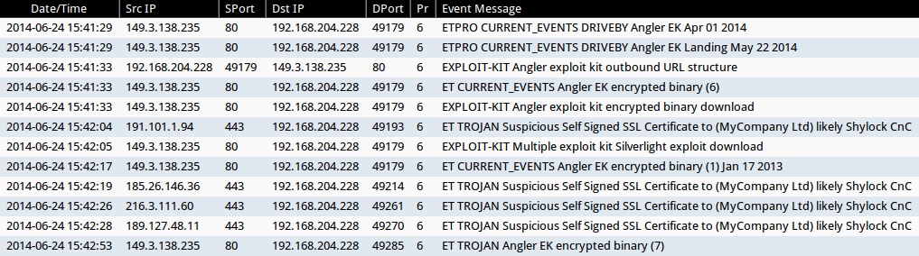 - 149.3.138[.]235:80 - EXPLOIT-KIT Angler exploit kit encrypted binary download (sid:31331)