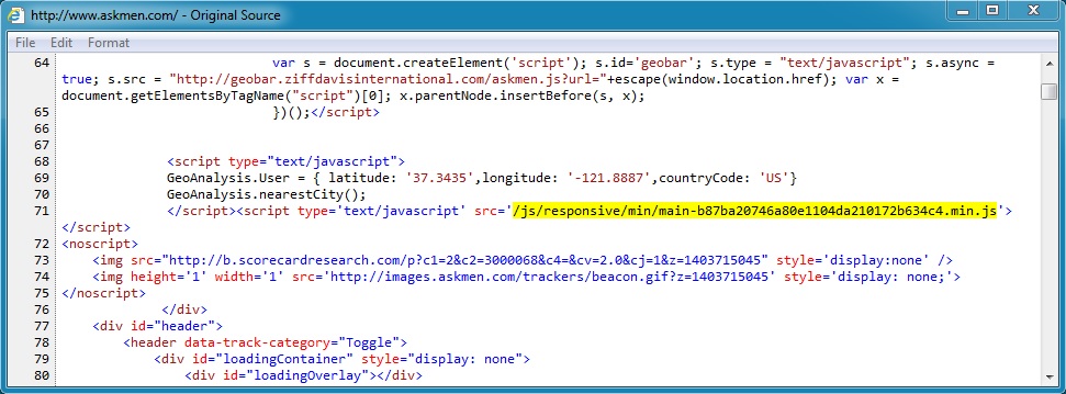 Step 1 - from the www.askmen[.]com index page to malicious javascript at www.askmen[.]com/js/responsive/min/main-b87ba20746a80e1104da210172b634c4.min.js