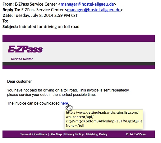 You have not paid for driving on a toll road. This invoice is sent repeatedly,