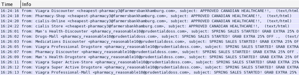 - SMTP pharmacy spam on TCP port 25