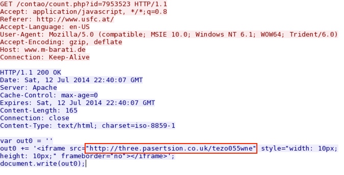 2014-07-12 - ANGLER EK FROM 192.200.105[.]130 - THREE.PASERTSION[.]CO[.]UK
