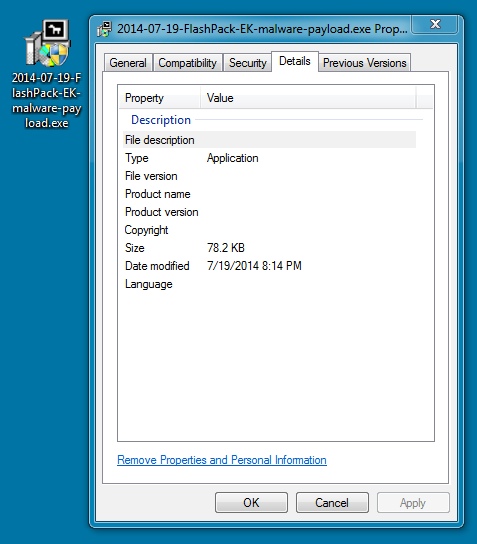 File name: 2014-07-19-FlashPack-EK-malware-payload.exe