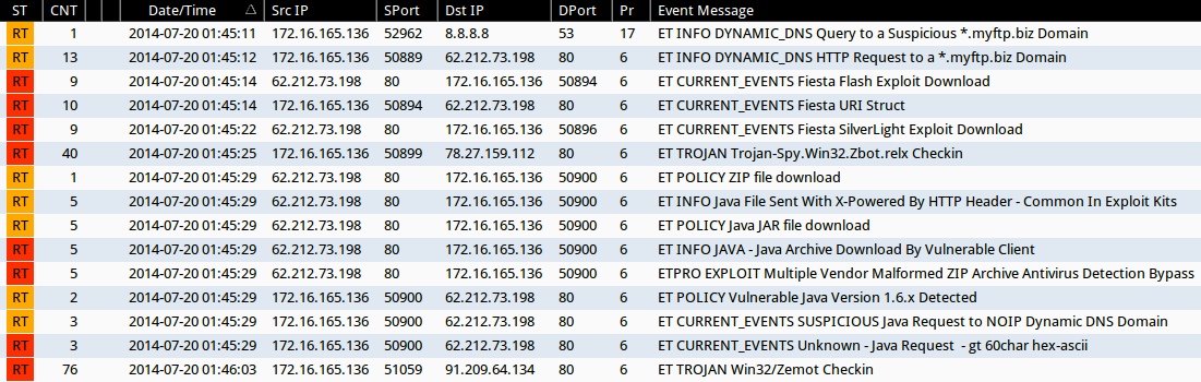 - 2014-07-20 01:45:14 UTC - 62.212.73[.]198:80 - ET CURRENT_EVENTS Fiesta URI Struct (sid:2018407)