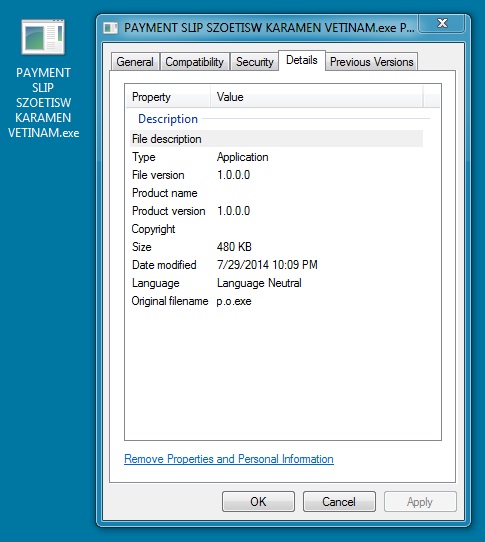 File name: PAYMENT SLIP SZOETISW KARAMEN VETINAM.exe