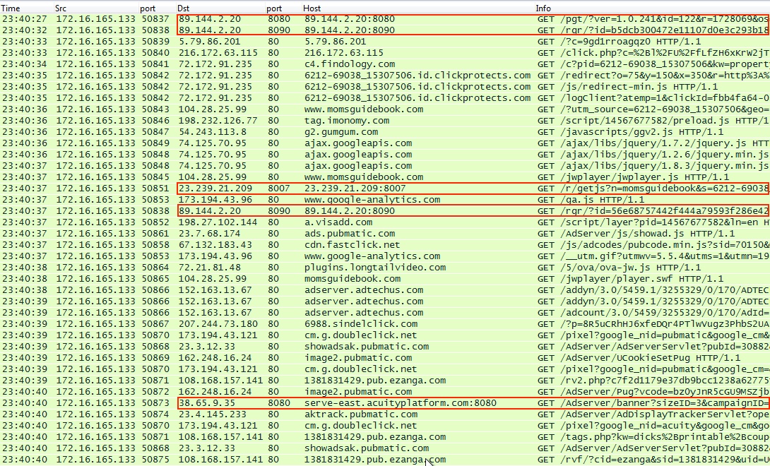 And what looks like click-fraud traffic happening, some of it on non-standard HTTP ports: