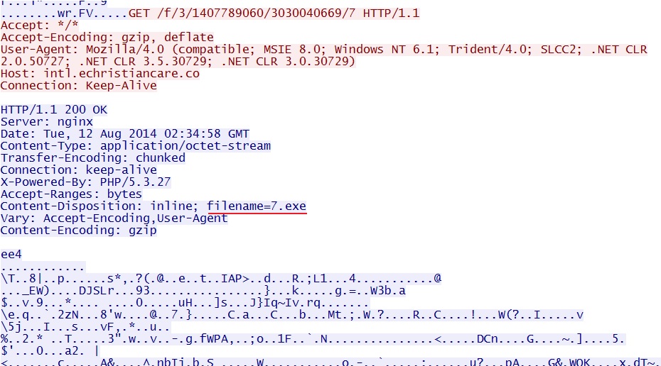 - 2014-08-12 02:34:46 UTC - 94.229.64[.]231:80 - intl.echristiancare[.]co - GET /f/3/1407789060/3030040669/7