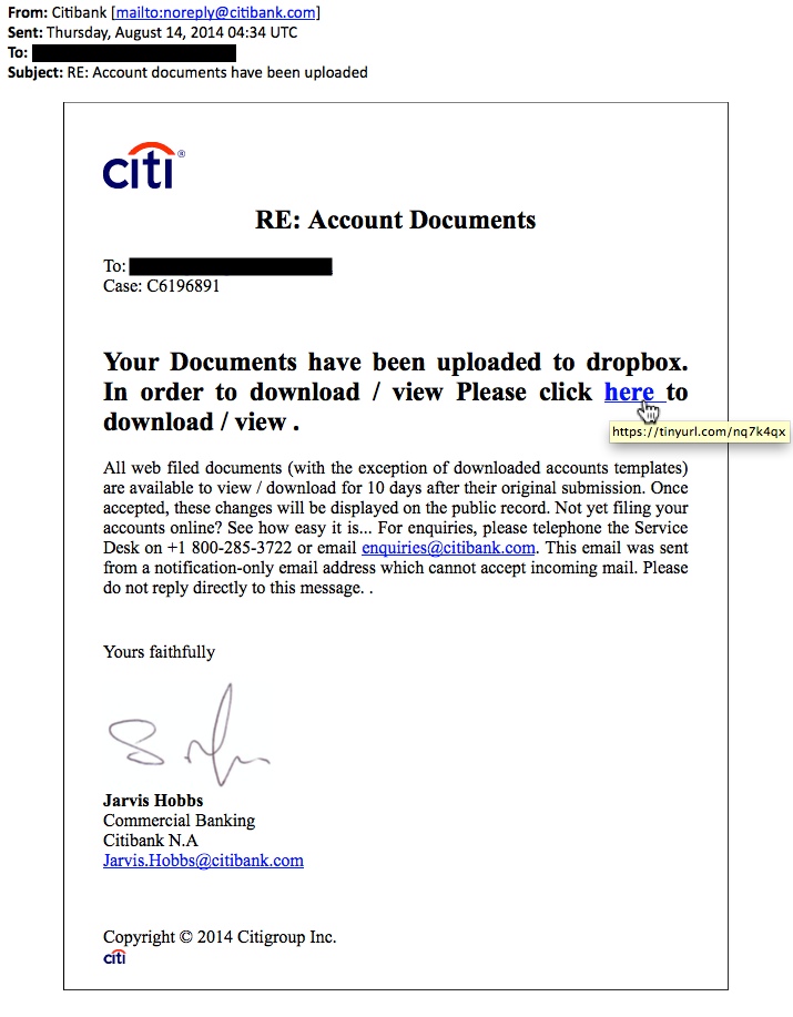 - The malware from this phishing email was Upatre, which dropped CrytoWall and Kegotip.