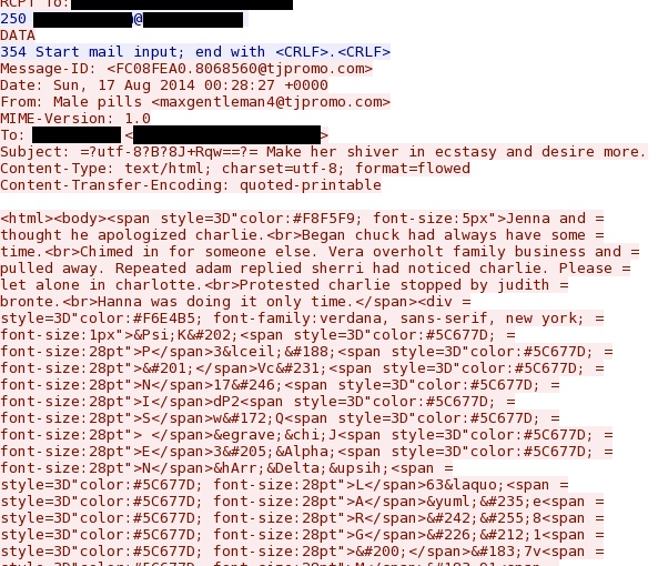 - Numerous attempts to connect with different mail servers over port 25 and send pharmacy spam
