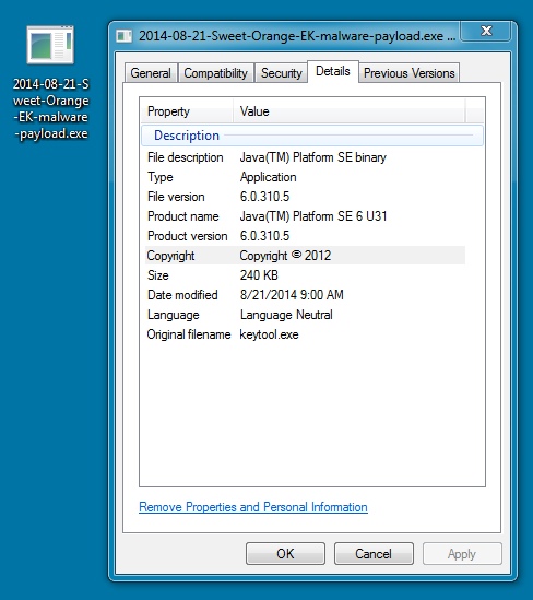 File name: 2014-08-21-Sweet-Orange-EK-malware-payload.exe